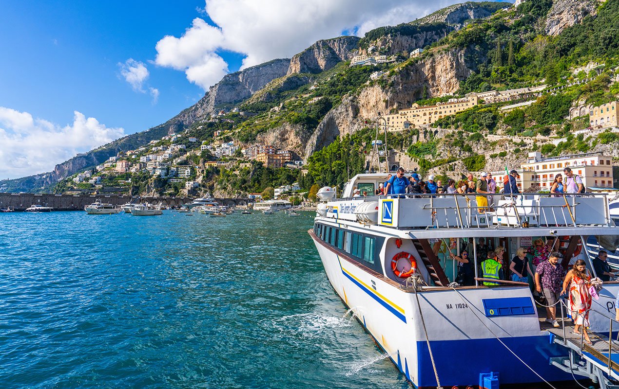 Most of the towns of the Amalfi Coast do not have train stations, so buses and boats make up the main public transportation options along the coast. Buses operate year-round and serve towns both on the water and in the hills. The ferry services between towns operate from April through October, with more limited services off season. You can also hire a taxi or a private car and driver, for a price, just note that they're sharing the same winding road that the buses use. If you're an experienced driver, you can also rent a moped or scooter for the ultimate Amalfi Coast road trip.