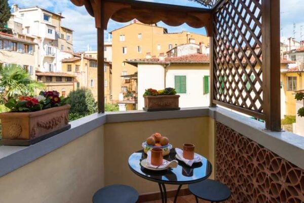 The charming Casetta Bonsi is a wonderful one-bedroom, one-bathroom vacation rental with an excellent historic center location. Start your morning on the cute terrace as you plan the day’s adventures in Florence. Located in the stylish Oltrarno neighborhood, this two-level property is located very near top sights like the Ponte Vecchio, only two blocks away, and the Palazzo Pitti museum and gardens. It’s also the perfect starting point for the scenic walk up to Piazzale Michelangelo – one of the prettiest walks in Florence!